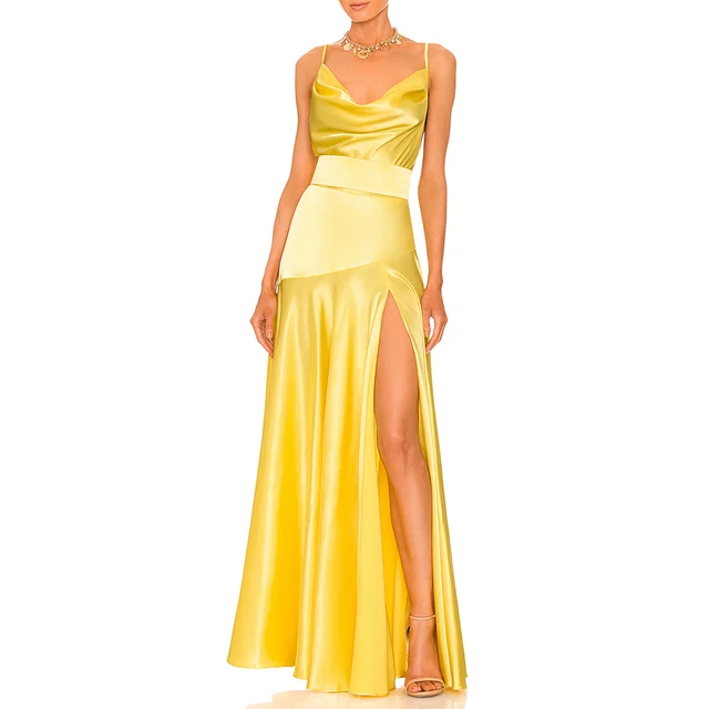 Wholesale Custom Lady Cowl Neck Elegant Women Dresses Slip Satin Women Evening Dresses Women Lady Elegant